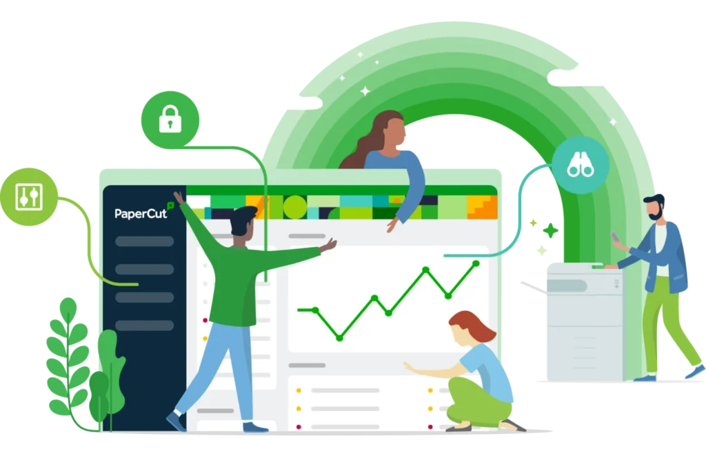 Reduce waste and cut costs with print tracking, rules-based printing, and user authentication. The system encourages responsible usage while promoting an eco-friendly workplace.